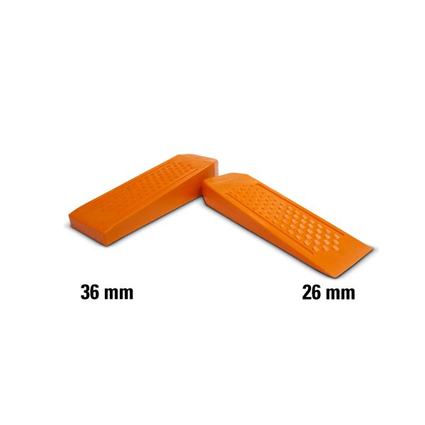 Resistente y robusta cuña, fabricadas en poliamida y resistente a los golpes. Con ranuras laterales y superficie texturizada, lo que aumenta notoriamente su sujeción e impide rebotes.